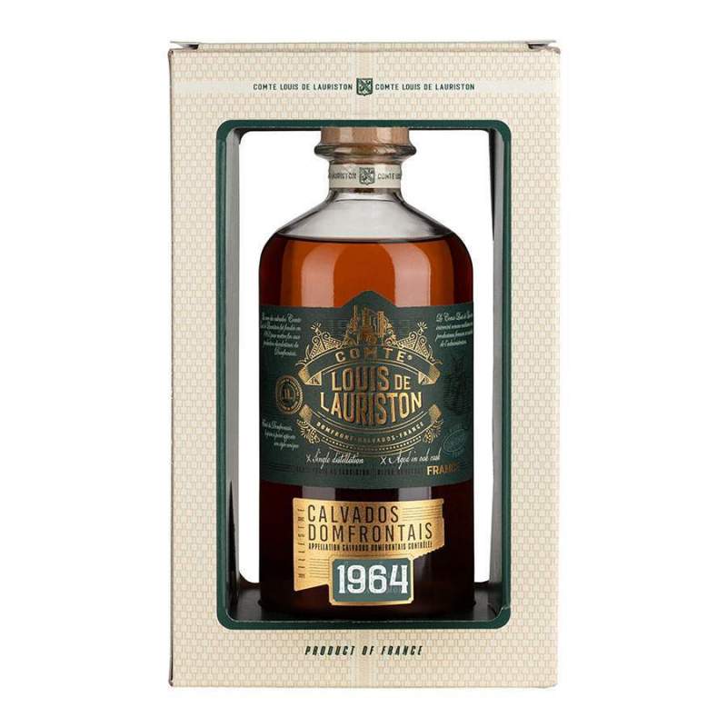 Ce Calvados millésime de la maison Comte Louis Lauriston a été distillé en 1964. Cette eau de vie de cidre est un Calvados Domfrontais.