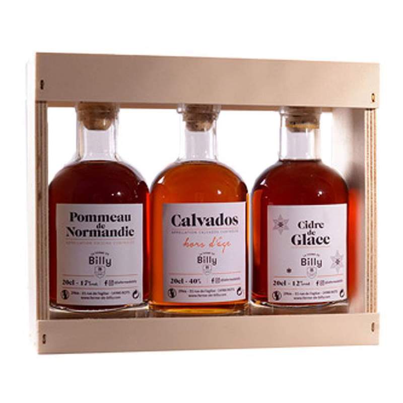 Le coffret découverte "normand" de la ferme de billy contient 3 jolies bouteilles; un Pommeau de Normandie, un calvados Hors d'âge et enfin un cidre de glace. Ces 3 produits sont maîtrisés à la perfection pour offrir et faire découvrir à un proche différent arôme de Normandie. Une très belle idée cadeau !