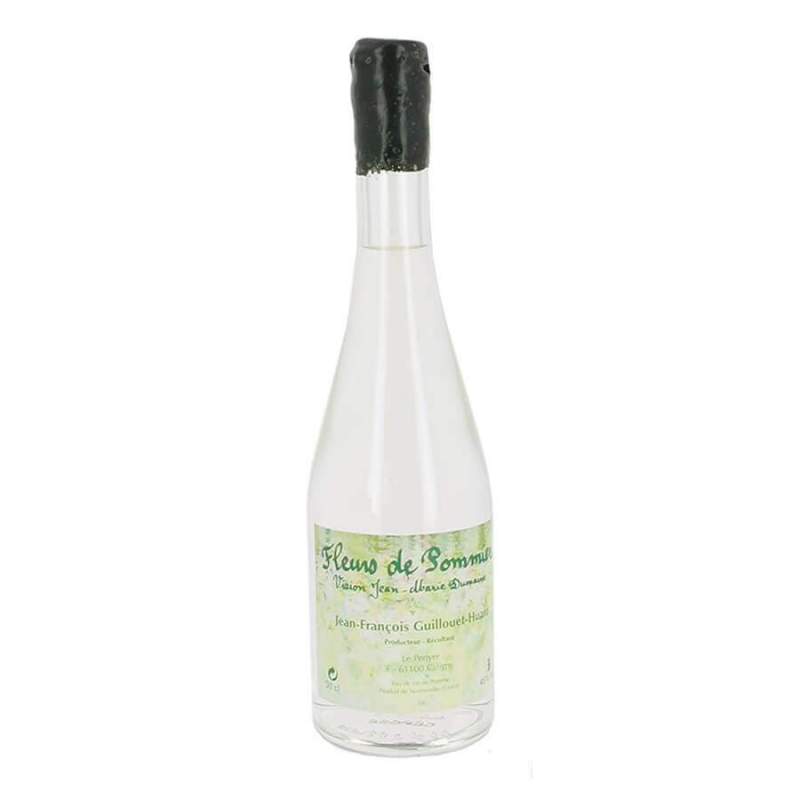 Fleurs de Pommier est une eau de vie blanche de pomme obtenue par distillation de la pulpe de pomme fermentée. La technique de Jean-François GUILLOUET HUARD est très différente d'une eau de vie de cidre blanche résultant de la distillation d'un cidre à l'alambic. Fleurs de Pommier, c'est le marc (la pulpe) de pommes qui n'est pas pressé, mais qui fermente quelques mois en cuve inox. C'est ensuite cette pulpe de pommes fermentée qui est distillée avec un type d'alambic particulier pour donner cette eau de vie de pomme. Fleurs de Pommier est une eau de vie blanche du même type que les alcools de poires, de mirabelles et d'autres fruits que l'on fabrique dans l'est de la France.