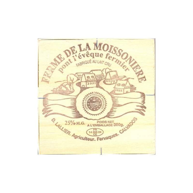 Le Pont l’Evêque AOP de la feme de la Moissonière est fabriqué à Fervaques tout près de Pont l’évêque en Normandie. Il se caractérise par une croute légèrement fleurie de couleur paille et une pâte tendre et moelleuse.