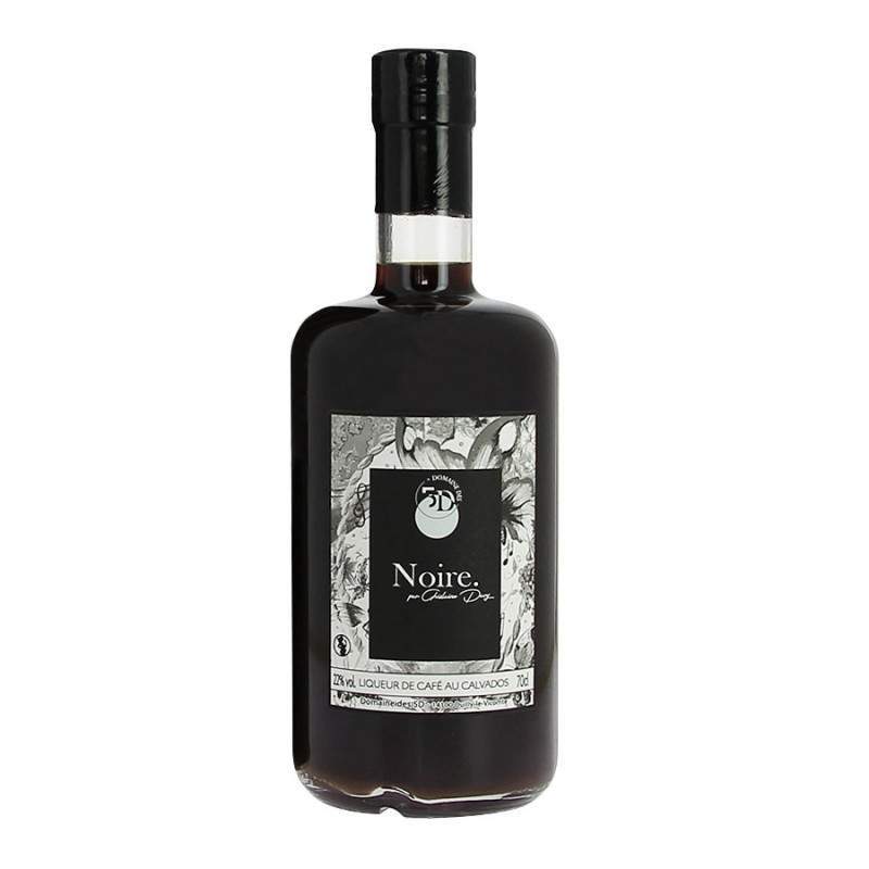 "Noire" la liqueur de café au Calvados du domaine 5D a été fabriqué à partir de grain café torréfié. Cette liqueur se déguste fraîche en tant que digéstif, ou en cocktail.