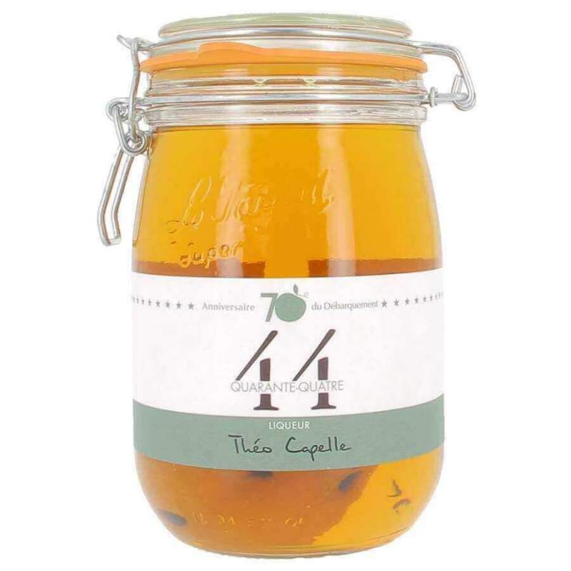La fameuse liqueur de Calvados 44 préparée par Théo Capelle dans le Cotentin. Cette recette d'antan est simple : Il s'agit de laisser macérer une orange dans un litre de Calvados, accompagné de 44 grains de café et de 44 sucres. Il faut à peu près 2 mois de macération pour obtenir cette liqueur de Calvados unique.