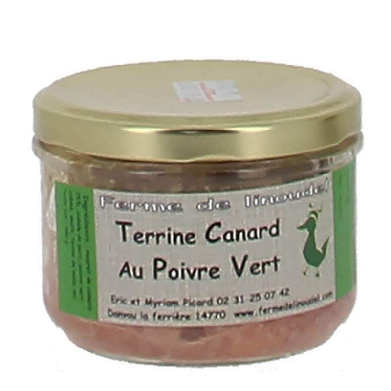 Une délicieuse terrine de canard au poivre vert délicatement relevé.