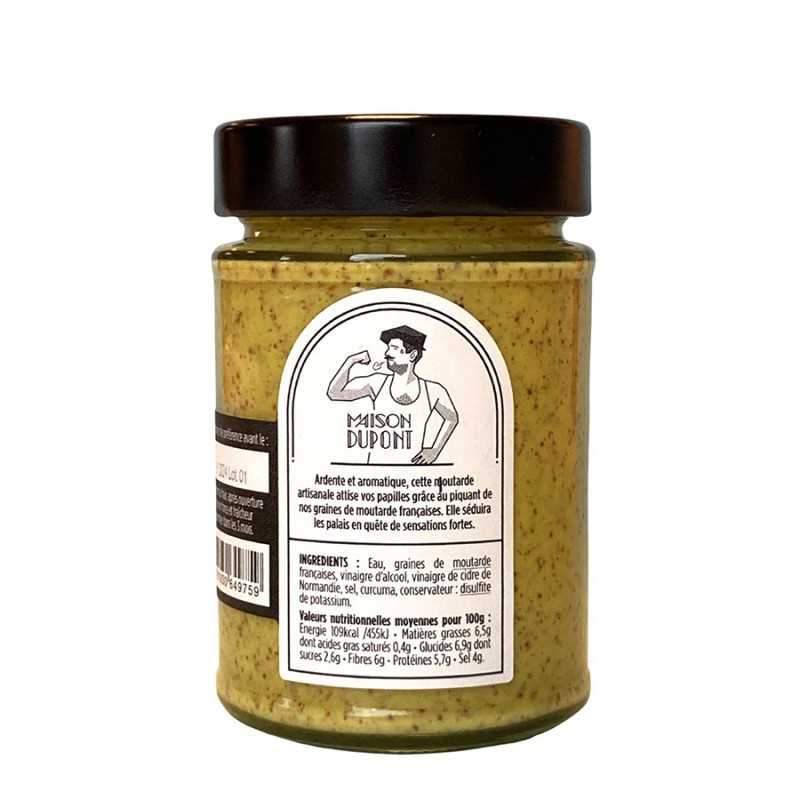 Cette moutarde originaire de la région normande est produite par Richard Dupont dans le 76 (Seine-Maritime). Passionné par son métier de moutardier-vinaigrier, il s'est engagé à revitaliser l'ancienne moutarderie d'Yvetot. Mettant en avant une approche artisanale et engagée, la moutarde conçue par Monsieur Dupont se distingue par sa formulation à base de vinaigre de cidre en provenance de Normandie.